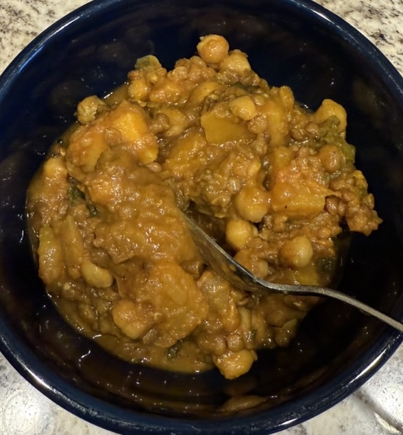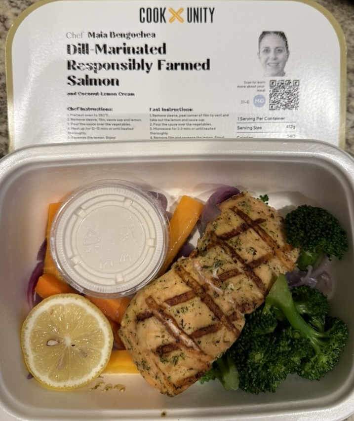 Food Day 48 January 31, 2025 Dill marinated salmon, veggies Coffee Tea, cookies Lentil chickpea stew Banana Protein shake Soylent