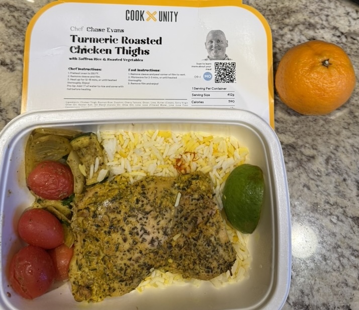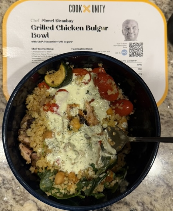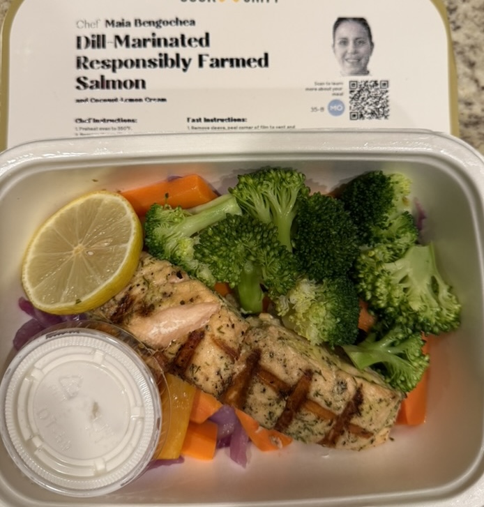 Food Day 40 January 23, 2025 Dill marinated salmon Coffee Chili lime chicken, rice and beans Tea and cookies Oranges Chicken bulgur bowl
