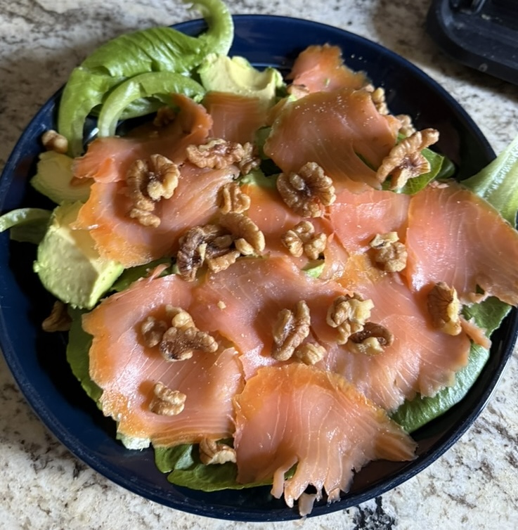 Food Day 39 January 22, 2025 Breakfast sandwiches Coffee Salmon, avocado, walnuts, lettuce Latte Oranges Frozen Greek yogurt