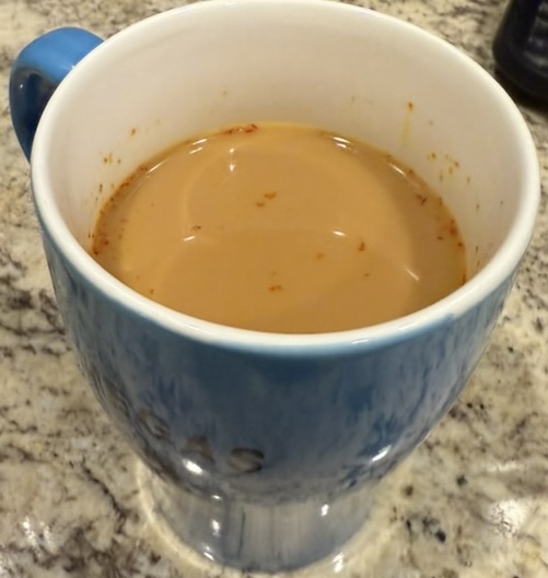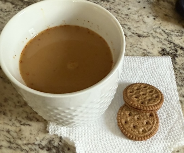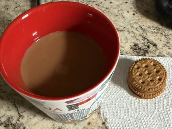 Food Day 38 January 21, 2025 Breakfast sandwiches Coffee Chai, cookies Salmon, avocado, walnuts, lettuce Oranges Lentil soup