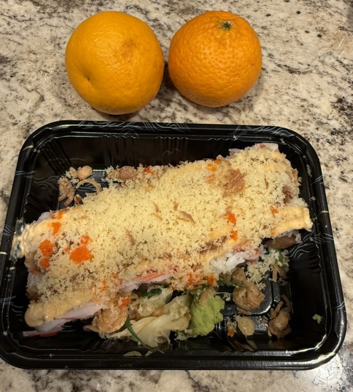Food Day 37 January 20, 2025 Sushi, oranges Chai, cookies Salmon, avocado, walnuts, lettuce More chai More sushi (Was a BOGO deal)