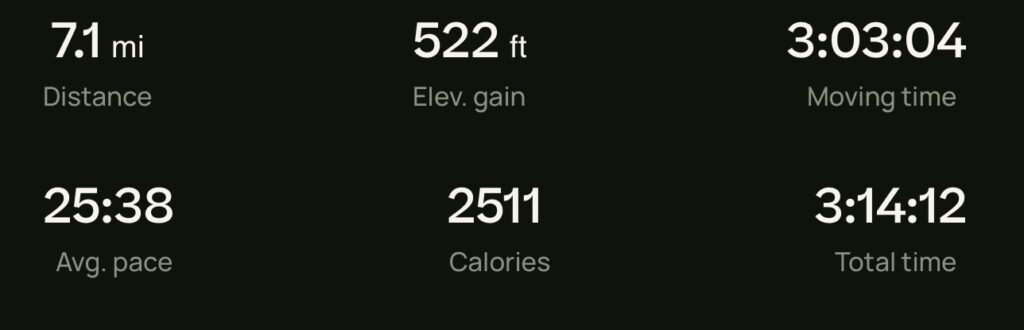 Food Hike Day 71 February 23, 2025 Hike Food Martin’s Ecuadorian chicken, almonds Coffee Shio Ramen Chai, mochi ice cream Almonds, berries
