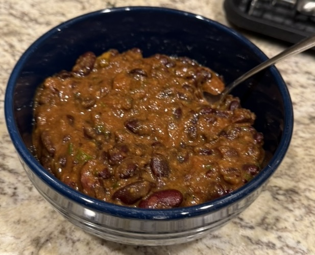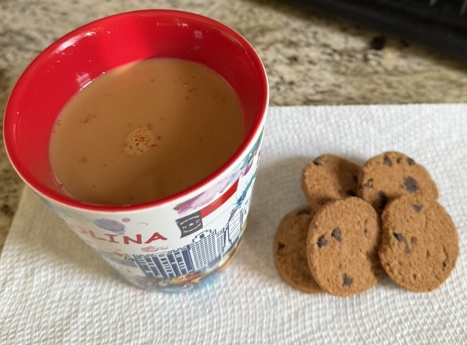 Food Day 58 February 10, 2025 Chicken suya, green beans, rice Chai, cookies Breakfast sandwiches Coffee Banana Rajma