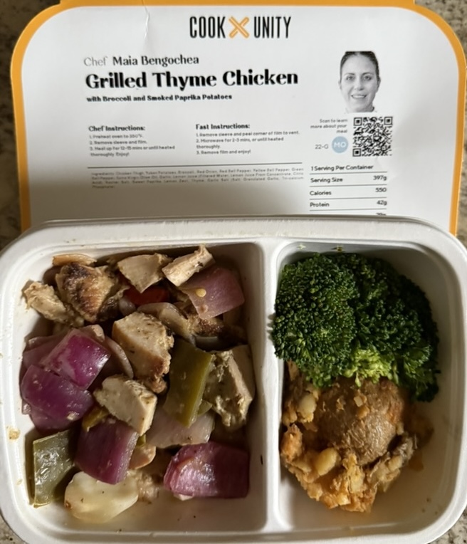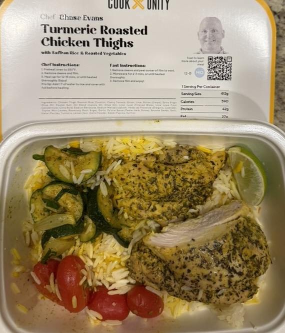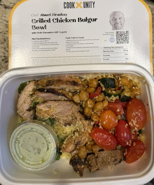 Food Day 60 February 12, 2025 Chicken bulgur bowl Banana Chai Chicken pesto sandwich Turmeric roasted chicken thighs
