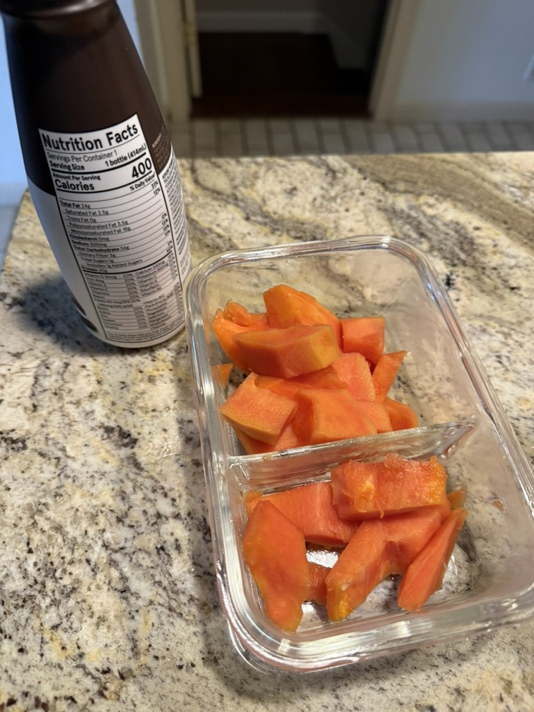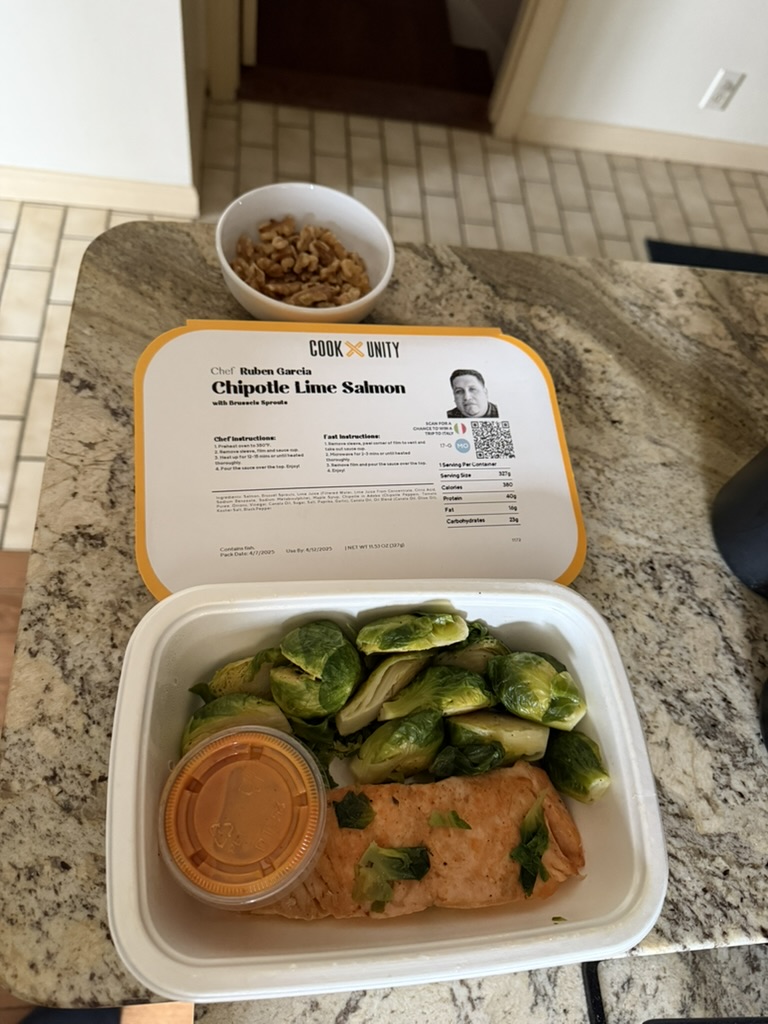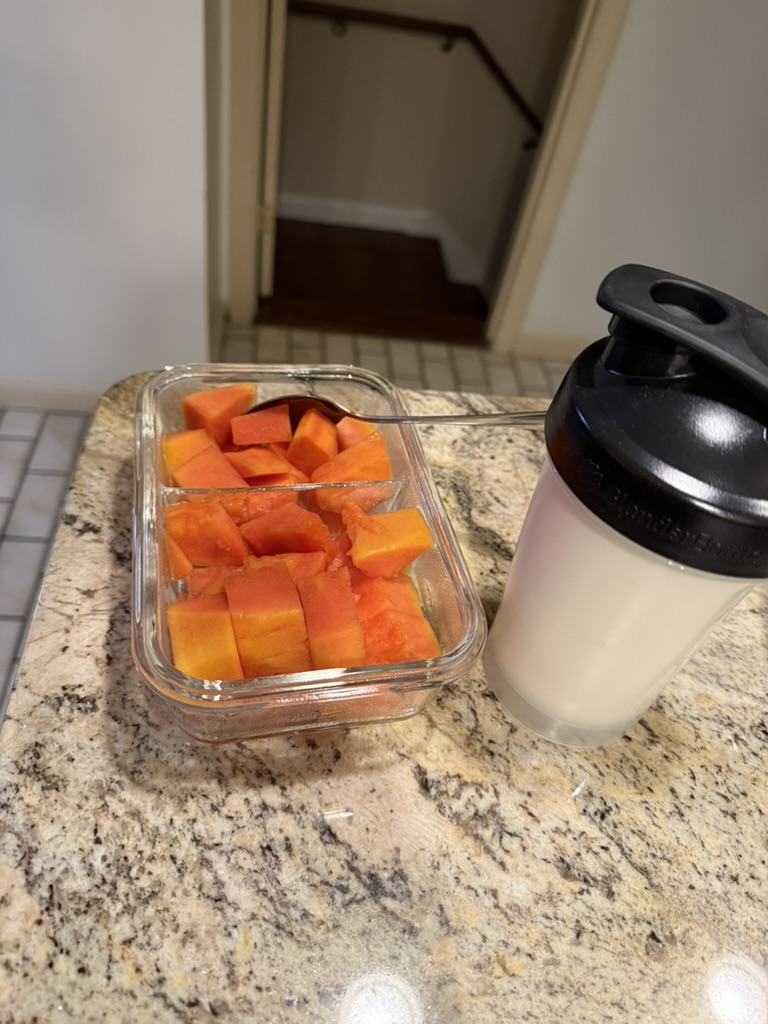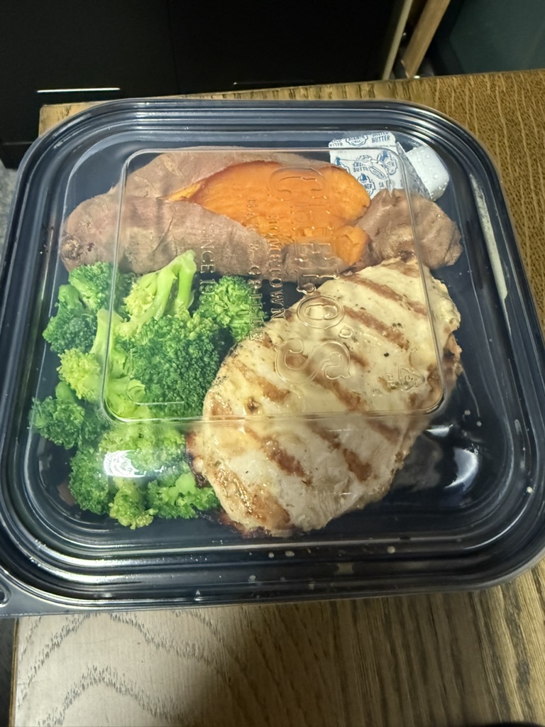 Food Gym Day 114 April 7, 2025 Gym Workout A Food Walnuts Yogurt protein shake, papaya Coffee Chicken, chimichurri, spinach Rice crisp thing Cashews Chicken, sweet potato, broccoli Yogurt protein shake