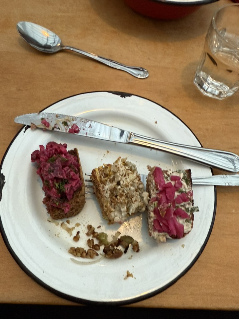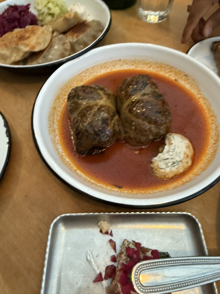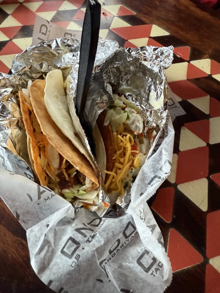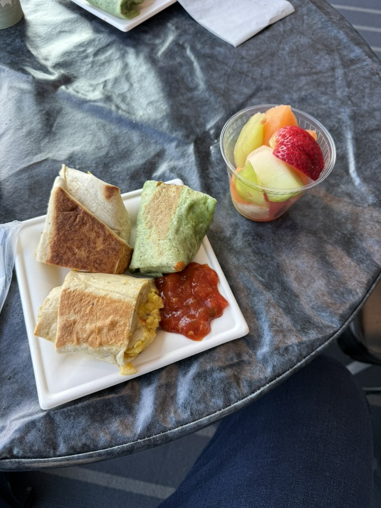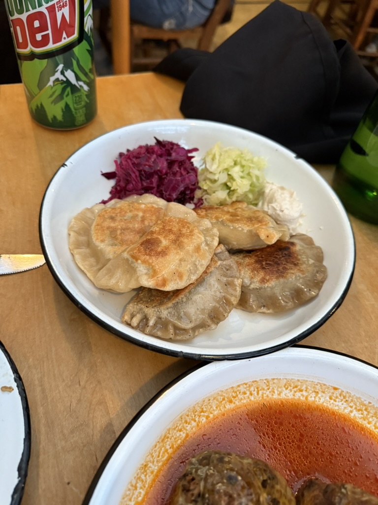 Food Day 155 May 18, 2025 The last items are from Apteka (Polish vegan restaurant). Not sure about all the names. Protein shake Breakfast burritos, fruit Tacos (chicken, beef) Pickle balls (2 puffs)