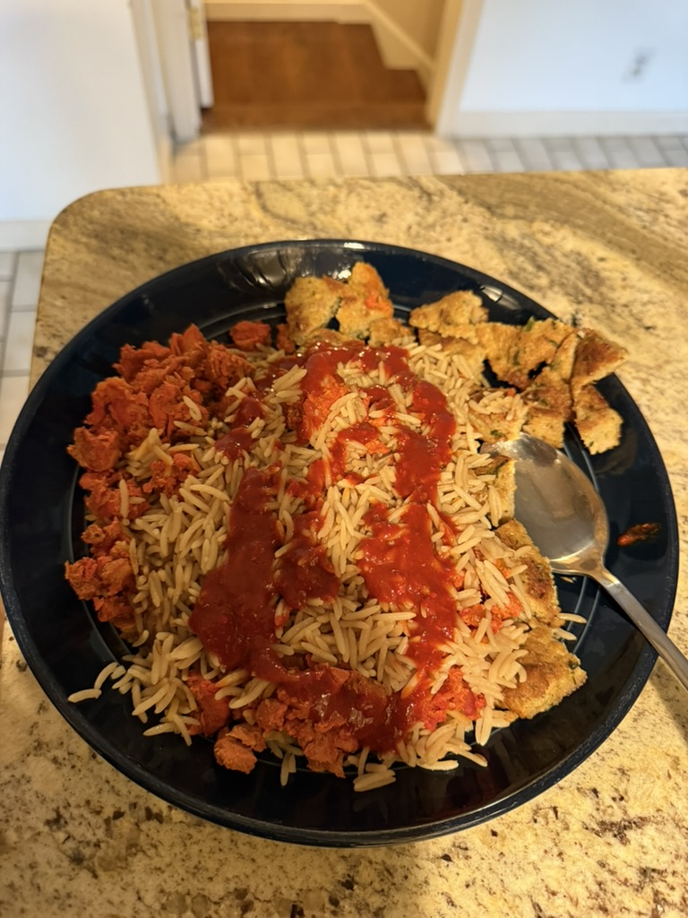 Food Gym Day 158 May 21, 2025 Gym Workout A Food Ricek cakes, peanut butter Yogurt protein shake Chai, cookies Coffee Tilapia, veggies Green tea Beef sticks Chicken korma, rice Protein shake