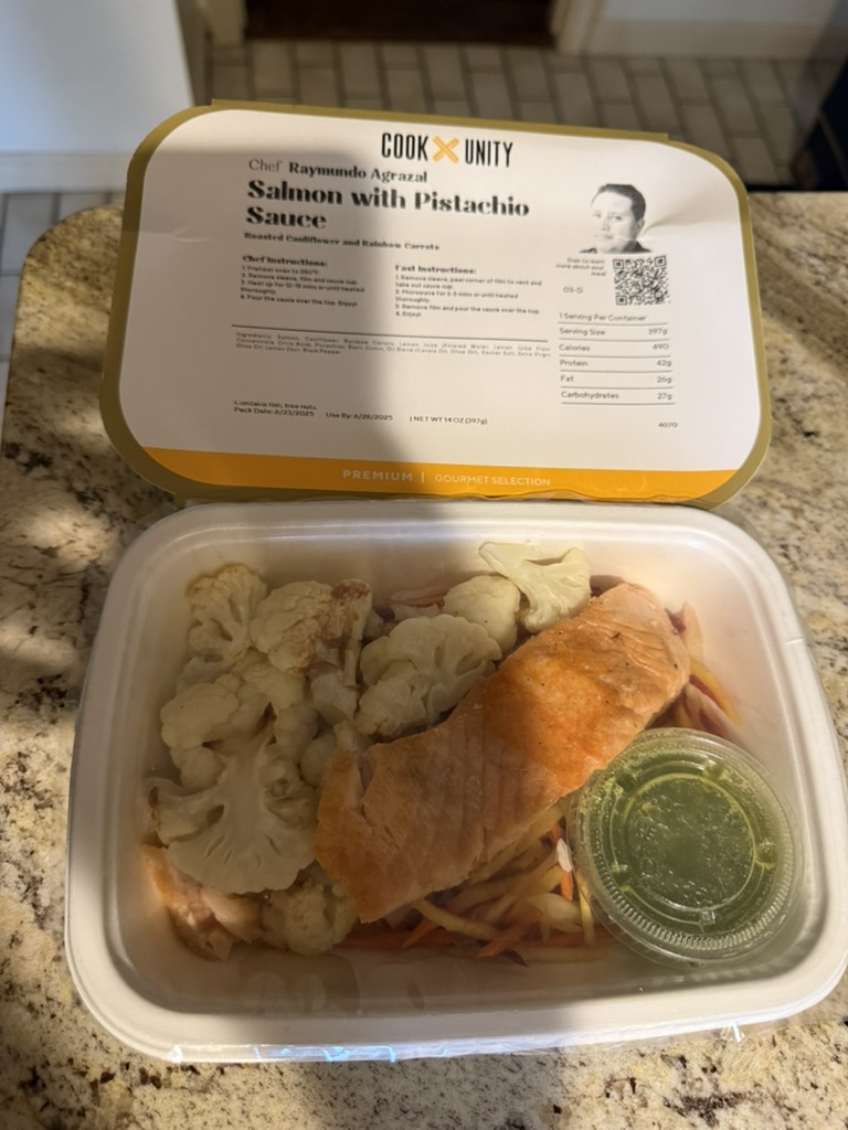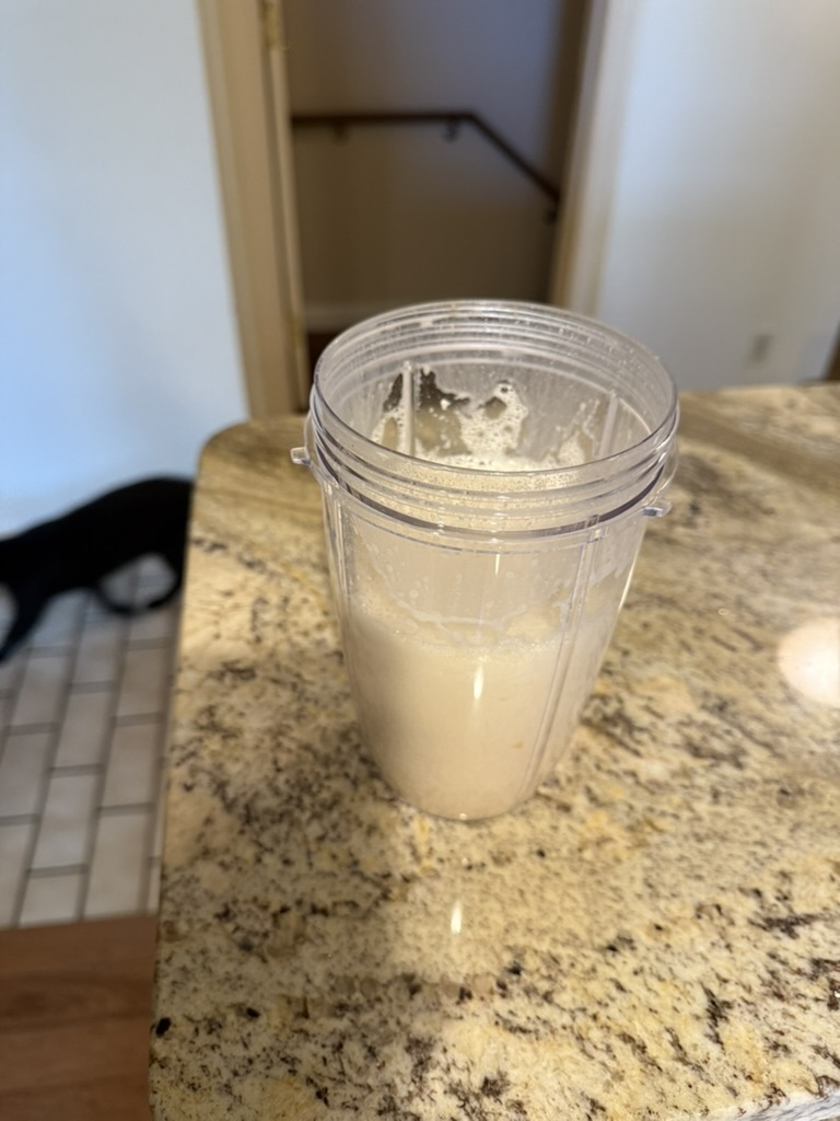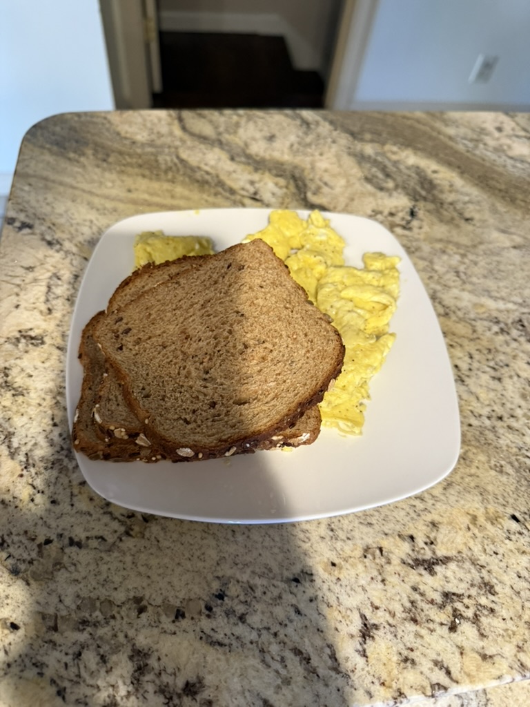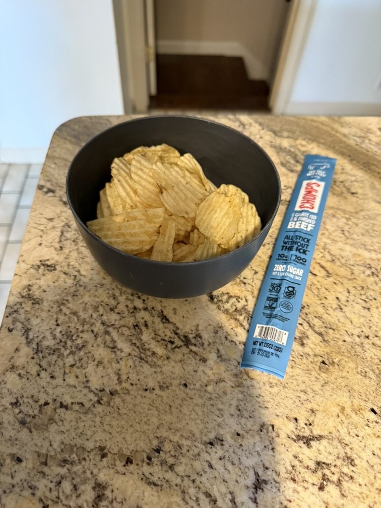 Food Walk Day 193 June 25, 2025 Walk (Evening): 2.25 miles Salmon, veggies Peanut butter protein shake Eggs, bread Chai Chips, beef stick Chicken Beef stick Casein protein shake