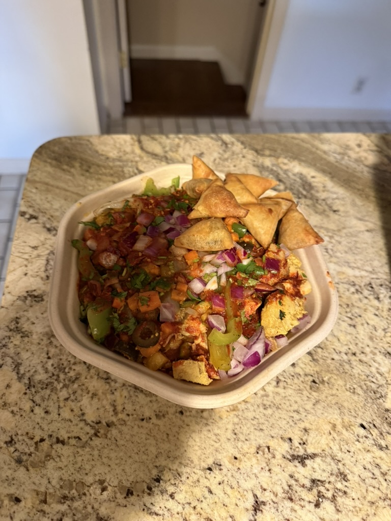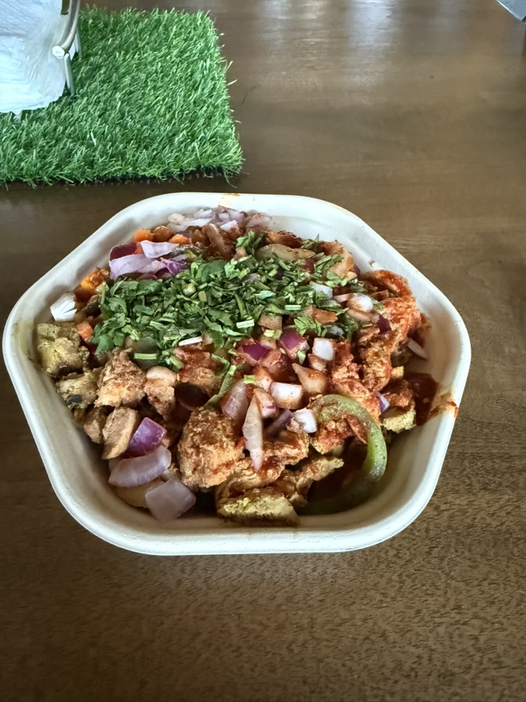 Cheat Day Food Hike Day 189 June 21, 2025 Hike Food Pizza Pistachio ice cream Protein shake Raspberry almond cake Chicken and rice bowl, mini samosas