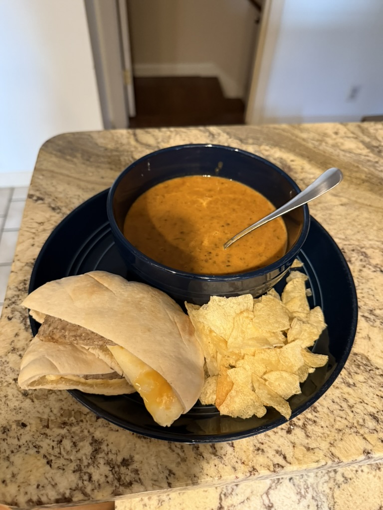 Food Gym Walk Day 191 June 23, 2025 Gym: Upper Body Walk (Afternoon): 1 mile Rice cakes, almond butter Yogurt protein shake Oranges, pistachios Coffee Chicken and rice bowl Lentils, breakfast sandwiches, chips Protein shake