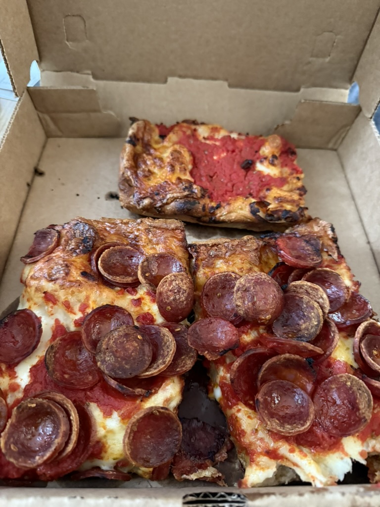 Cheat Day Food Hike Day 210 July 12, 2025 Hike Food Coffee milk Eggs benedict, chicken, waffles, home fries, sausage patties, eggs Coconut water Brownies, raspberry almond cake Pizza, wings
