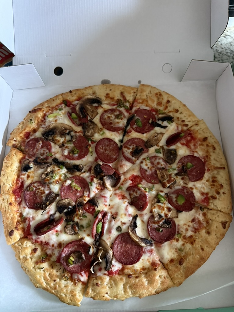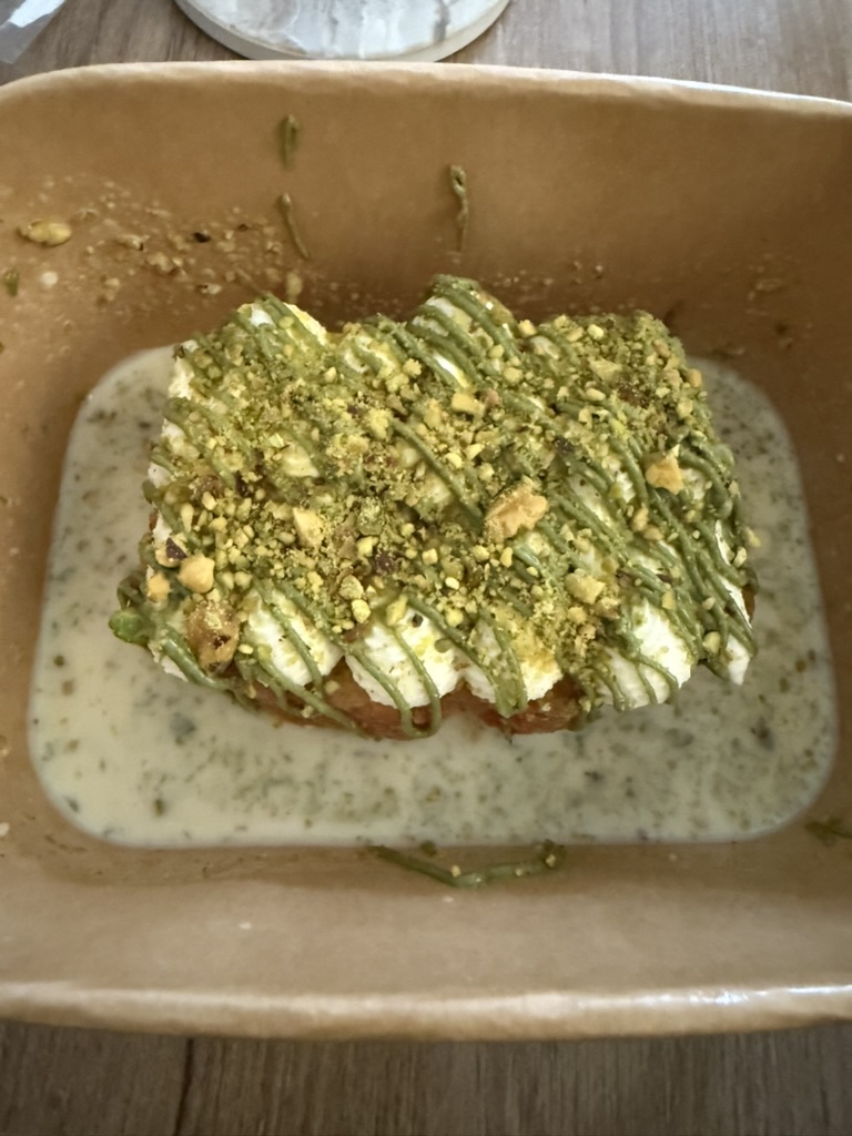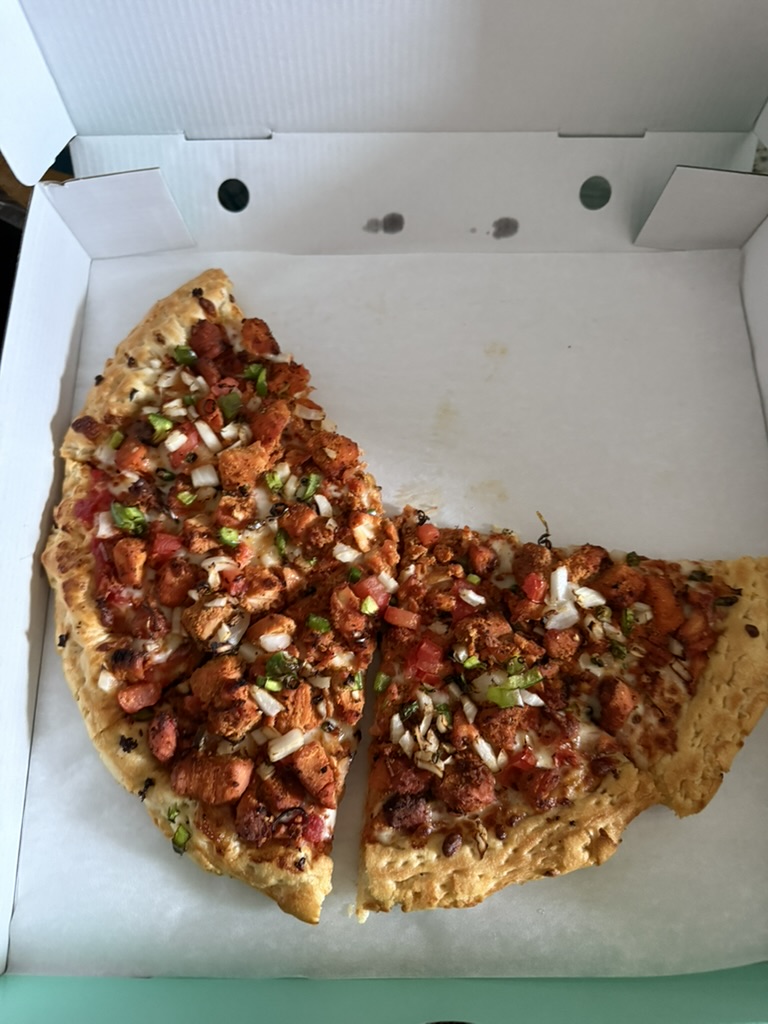 Cheat Day Food Gym Day 202 July 4, 2025 Gym: Lower Body and Core Banana, peanut butter Chicken, veggies, couscous Pizza Chicken pizza Pistachio milk cake
