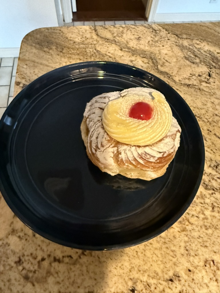 Cheat Day Food Day 147 May 10, 2025 Breakfast Sandwiches Chai, cookies Pizza strip Pizza Zeppole Another zeppole