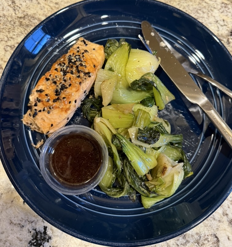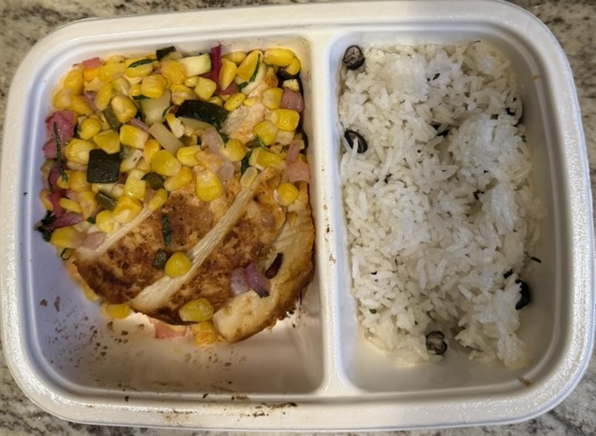 Food Hike Day 21 January 4, 2025 Hike Food Salmon, bok choy Pistachio Latte Chili lime chicken, rice, corn salsa Frozen Greek yogurt