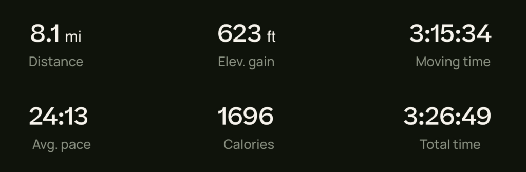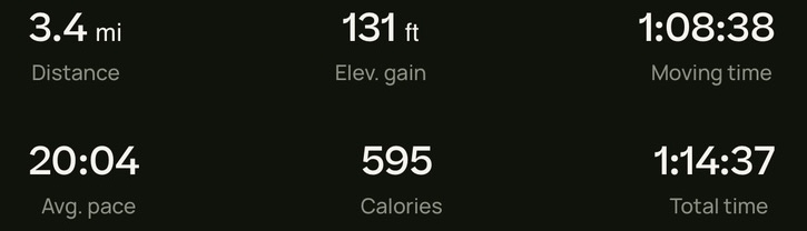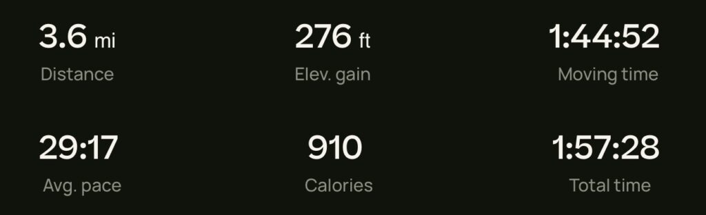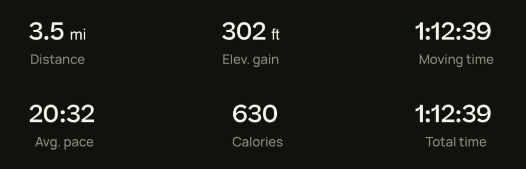 Food Hike Weight Check Day 14 December 28, 2024 Weight Check 298lbs (135.171kg) Hike I doubt the “Calories” stat is accurate. Hike stats Food Sausage and peppers, banana Chai, cookies Chicken veg patties, potatoes, mayo Mochi ice cream