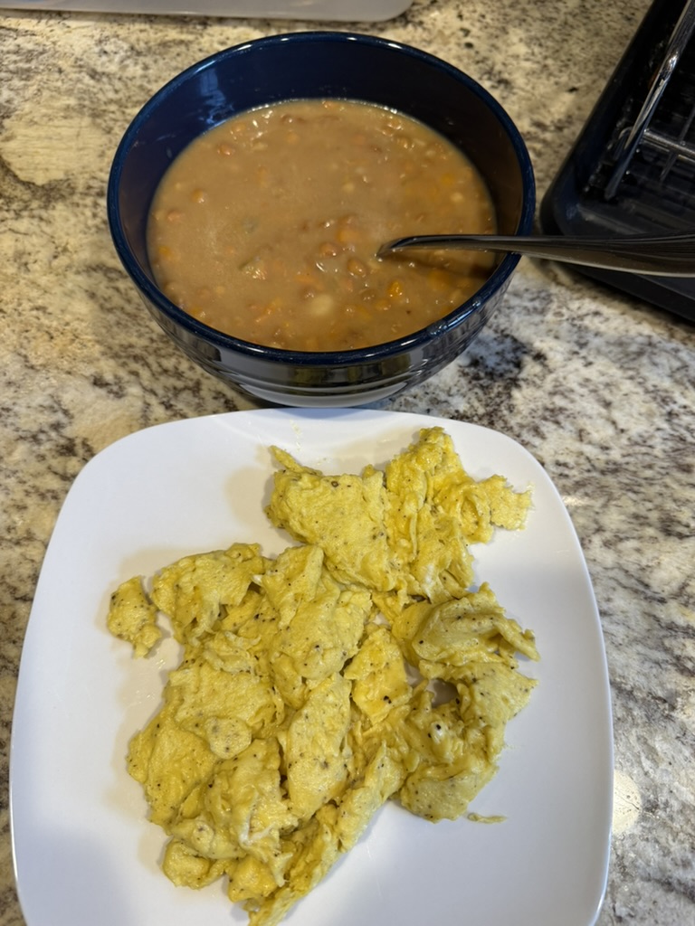 Lentil soup, eggs